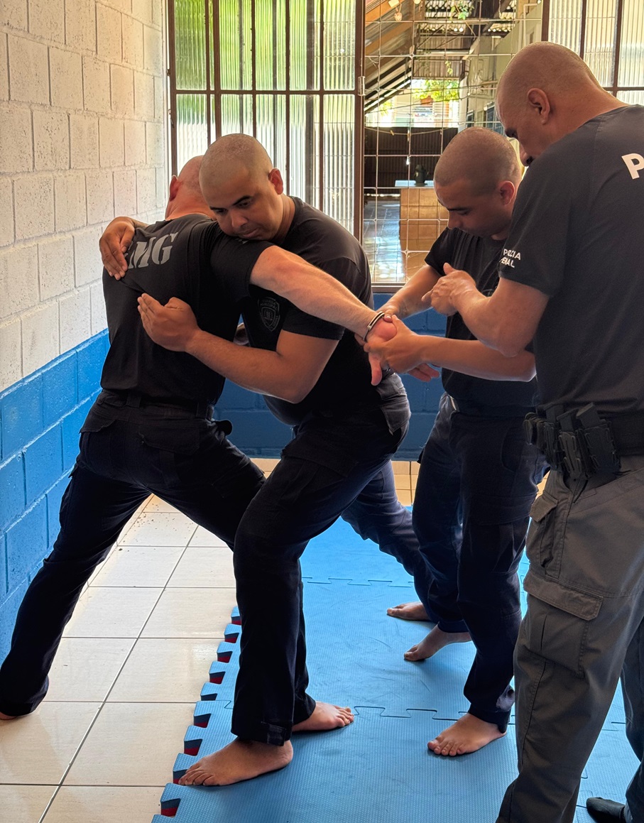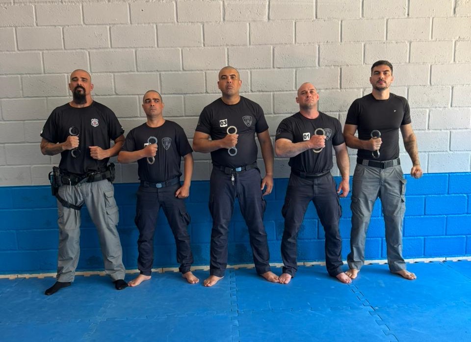 Policiais penais ministram treinamento de técnicas de imobilização com uso de algemas para guardas municipais de Guaíra