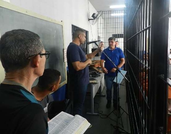 Testemunho de ex-apenado emociona participantes - Durante a tarde, o pastor Jonas Correia, da equipe de Evangelismo Vida em Cristo, promoveu momentos de louvor na Escola do Anexo e na 6ª galeria. As atividades incluíram o testemunho de um ex-apenado, apontado pela organização como um dos momentos mais emocionantes e edificantes do evento. Os dois cultos somaram 100 participantes.