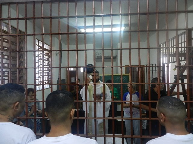 Missas e confissões - A programação teve início com as celebrações conduzidas pela Pastoral Carcerária. Dois padres presidiram missas na Escola do Anexo e no coletivo da 6ª galeria, reunindo cerca de 100 internos. Durante o momento religioso, 35 apenados realizaram o sacramento da confissão.