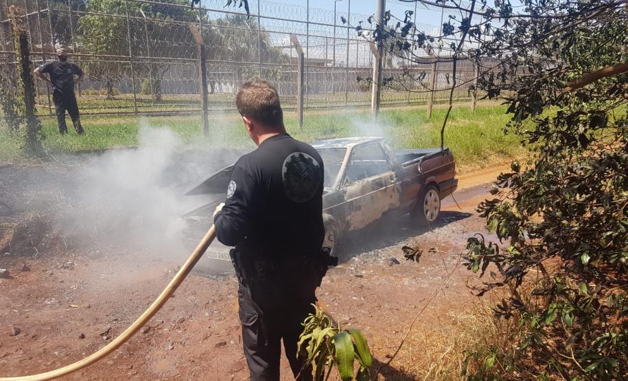 Agentes brigadistas apagam incêndio em carro que estava próximo à Penitenciária Estadual de Foz do Iguaçu 26/10/2020 - 09:20