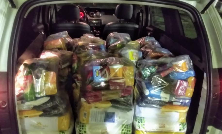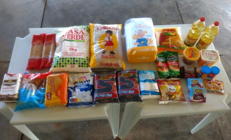 As cestas incluíram pacotes grandes de arroz, feijão, açúcar e farinha, além de 2 litros de óleo de soja, margarina, macarrão, leite em pó, fermento em pó e biológico, fubá, doce de leite e outros itens. Ao todo, foram 21 tipos de alimentos ou condimentos.