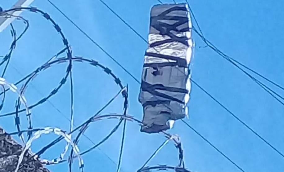 Agentes penitenciários da Cadeia Pública Hildebrando de Souza (CPHS), em Ponta Grossa, na região dos campos gerais, interceptaram um pacote com duas serras e 10 celulares, além de diversos acessórios para os aparelhos. A ação ocorreu neste sábado (10/10). Após a tentativa de arremesso, o "kit cadeia", como é conhecido, ficou preso na cerca elétrica do muro, nos fundos da unidade prisional.