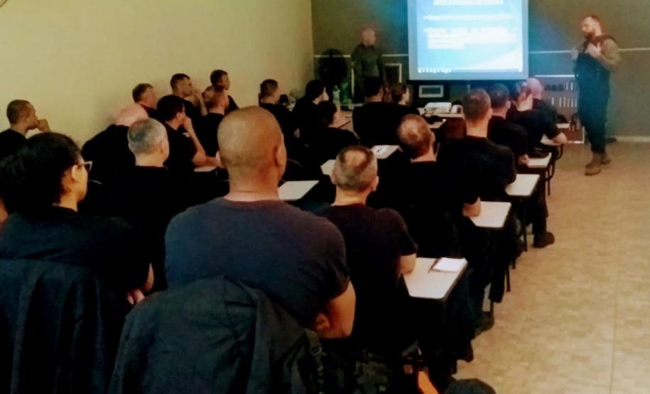 “Esse é o primeiro ano que estamos possibilitando esse curso, que tem o objetivo de nivelar os agentes, tanto conceitualmente quanto na prática, em relação a procedimentos adotados nas operações motorizadas”, destacou a diretora da ESPEN, Marilza Stadler de Campos Hack. Técnicas de abordagem e revista, legislação aplicada ao sistema penal, armamento e tiro, tecnologias não-letais e operação de bodyscan, foram outros asssuntos tratados no curso.