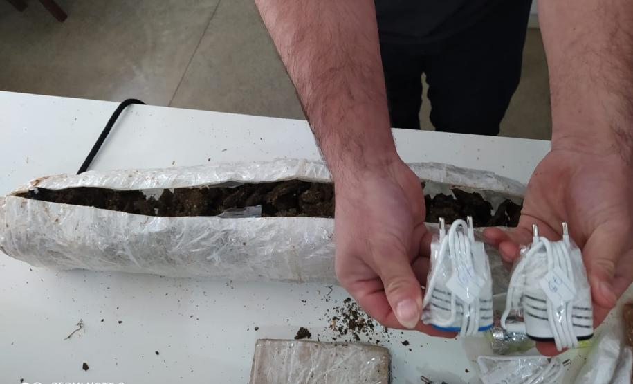 Além da droga, dos celulares e da balança, no pacote haviam cinco isqueiros, um maço de cigarros, 17 pacotes de fumo, uma bateria para celular, um fone de ouvido, uma cola epóxi, um dichavador, 15 carregadores e um cabo USB. Os produtos foram encaminhados à Delegacia da Polícia Civil para que fossem feitos os procedimentos cabíveis.