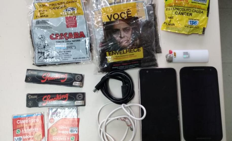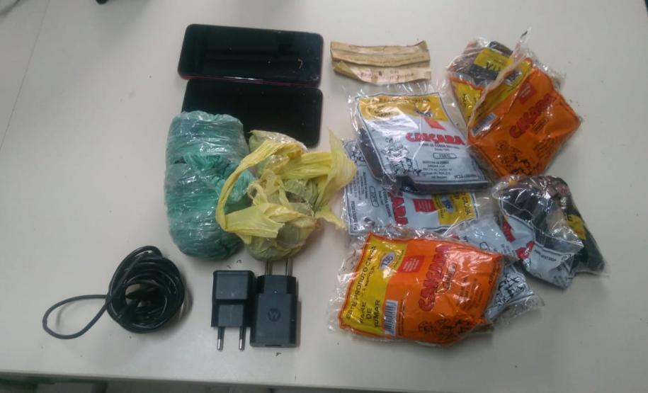 De acordo com ele, no lugar onde o suspeito estava, os servidores encontraram um pacote que continha, além da droga, do fumo e dos celulares, três carregadores e cinco chips.