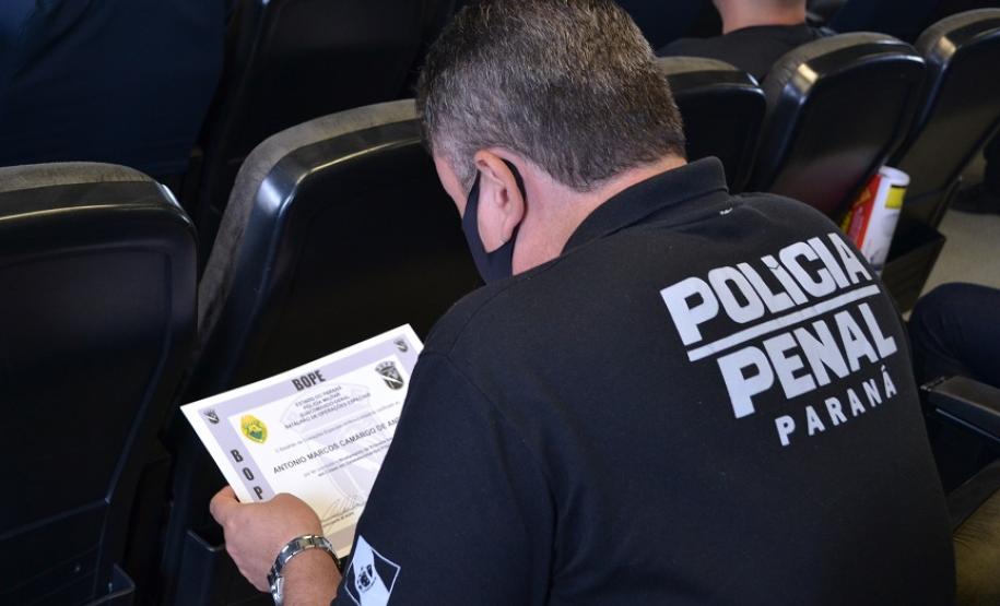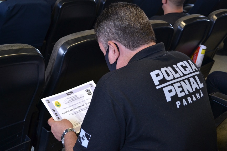Agentes penitenciários do Departamento Penitenciário do Paraná participaram na última semana do curso de primeira intervenção em crise, ministrado pelo Batalhão de Operações Especiais (BOPE). Ao todo, 16 servidores receberam a certificação que ocorreu nesta sexta-feira (26/02), no Quartel do Comando-Geral da Polícia Militar, em Curitiba.