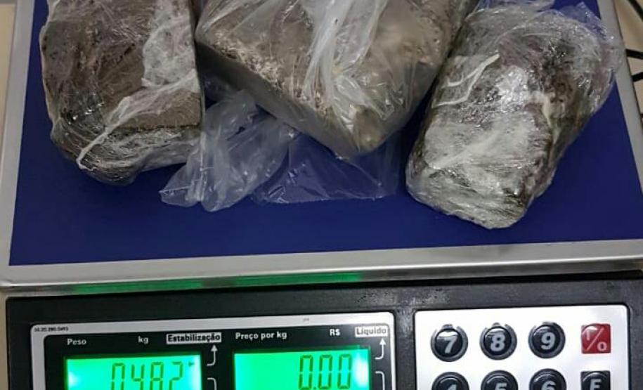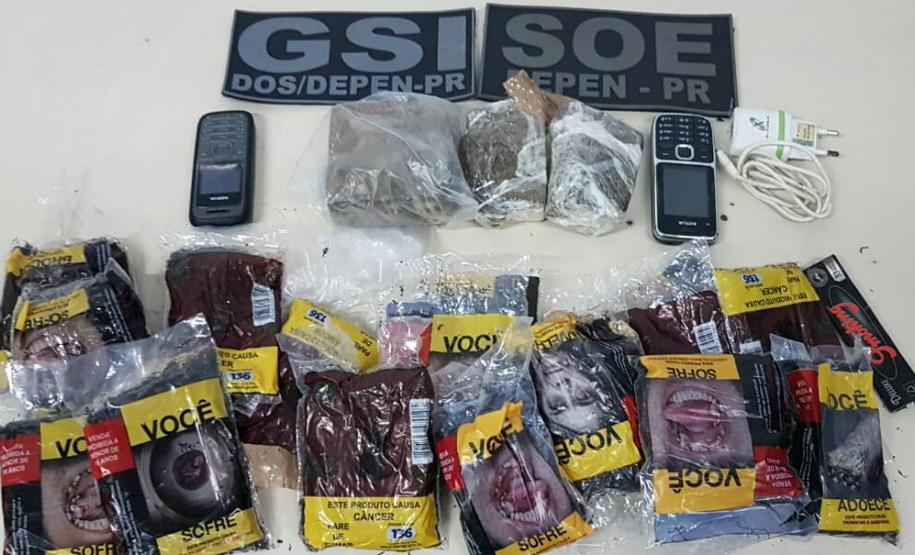 Os agentes do Setor de Operações Especiais prenderam o homem, de 23 anos, em flagrante. No momento da prisão, de acordo com Brito, ele arremessava uma bolsa contendo: 482 gramas de substância característica para maconha, 15 pacotes de fumo, dois aparelhos celulares e um carregador para celular.