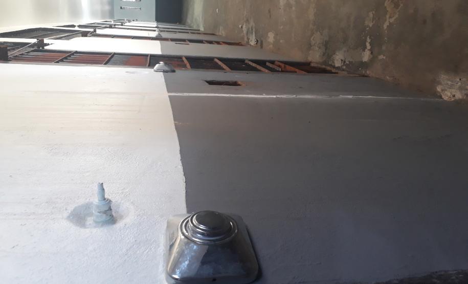 PRESOS TRABALHANDO - Nesta obra da CPLN, um acordo entre o Depen e a BMB Construções Eireli permitiu que os próprios presos fizessem os reparos necessários. “Este é um caso de canteiro de trabalho cooperado. Isto é, fazemos um convênio com a empresa e ela é responsável por pagar um salário mínimo a cada um dos internos”, afirmou o chefe do chefe do Setor de Produção e Desenvolvimento (Seprod) do Depen do Paraná, Boanerges Silvestre Boeno Filho.