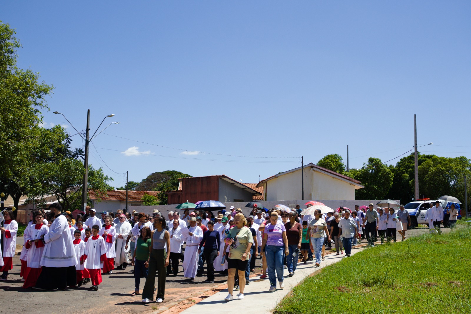 Uma caminhada em celebração ao “Jubileu dos Encarcerados” foi realizada na última quinta-feira (20), em Cruzeiro do Oeste. A atividade reuniu a comunidade local em um percurso de aproximadamente dois quilômetros até o Colégio Municipal Rocha Pombo, onde foi celebrada uma missa. Em seguida, os participantes seguiram até a Penitenciária Estadual de Cruzeiro do Oeste. Na unidade, houve um momento religioso com a Cruz Peregrina para abençoar as pessoas privadas de liberdade que quiseram participar.