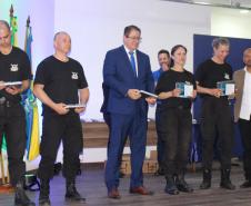 Em seguida, foram formados os concluintes do Curso de Formação em Segurança Interna, que tem por objetivo capacitar os agentes penitenciários a atuar no Grupo de Segurança Interna (GSI). Em todo o Paraná, foram 460 alunos formados na instrução de 80 horas teóricas e práticas, em regime de semi-internato. O Curso de Segurança na Operação de Bodyscan, que atingiu 236 servidores, e o de brigadistas de incêndio, com quase mil concluintes, também foram lembrados na solenidade.