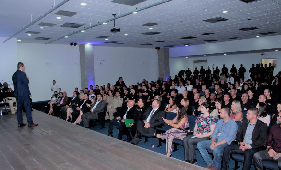Agentes, instrutores, diretores de unidades e coordenadores regionais participaram da Cerimônia de Encerramento das Atividades de 2019 da Escola Penitenciária (Espen), do Departamento Penitenciário do Paraná (Depen), que ocorreu nesta terça-feira (19/11), no auditório da Polícia Rodoviária Federal (PRF). Durante o evento, foram apresentados vídeos dos cursos aplicados nas últimas semanas, além da assinatura de convênios entre a Secretaria da Segurança Pública, o Depen e universidades particulares, para a promoção de bolsas de estudo e de cursos voltados à segurança penitenciária.