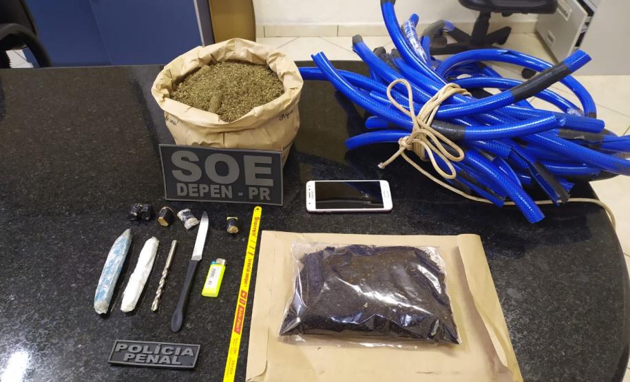 Ainda de acordo com Dias, o jovem portava todos os materiais ilícitos. “Ali, foram encontrados a droga, o fumo e a serra, já preparados para serem arremessados na Penitenciária Estadual de Foz do Iguaçu”, contou. O chefe regional da DOS explicou que esta quantidade de droga está sendo apreendida rotineiramente nas abordagens realizadas pela equipe SOE no complexo penal de Foz do Iguaçu.