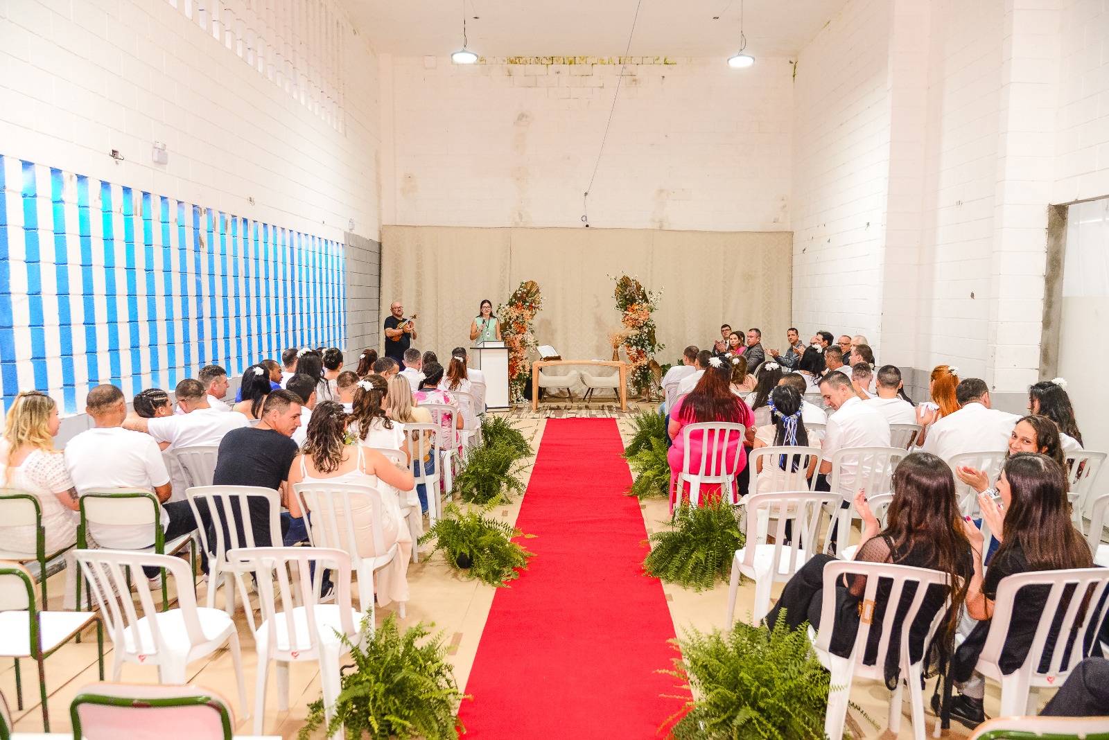 Na quarta-feira (10), Dia Internacional dos Direitos Humanos, a Penitenciária Estadual de Francisco Beltrão (PEFB) sediou, pela primeira vez, um casamento coletivo que reuniu 23 casais em uma cerimônia da 7ª edição do projeto Casando Direitos, iniciativa da Defensoria Pública do Paraná (DPE-PR) que regulariza a situação matrimonial de pessoas privadas de liberdade (PPL) sem custos. Esta foi a maior edição do Casando Direitos até aqui, em número de casais.