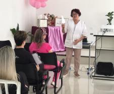 A enfermeira da PEFB, Maria Teresa Techy, relembrou às participantes a origem do Outubro Rosa e destrinchou informações sobre o autoexame, esclarecendo informações sobre a integração da Rede SUS em Francisco Beltrão com as Estratégias de Saúde da Família (ESF). “Esta campanha nada mais é do que um questionamento para a mulher: o que elas estão fazendo por elas mesmas? A rotina do dia-a-dia é bastante intensa e as vezes a saúde física e emocional acabam ficando de lado. Nós abordamos este questionamento e incentivamos as mulheres a reforçarem o autocuidado. Reforçamos a elas que todas as unidades de saúde da cidade estão preparadas com agendas disponíveis para atender estas mulheres, inclusive no turno da noite, para que todas possam se cuidar de forma efetiva e se valorizar em completo”, explica Techy.