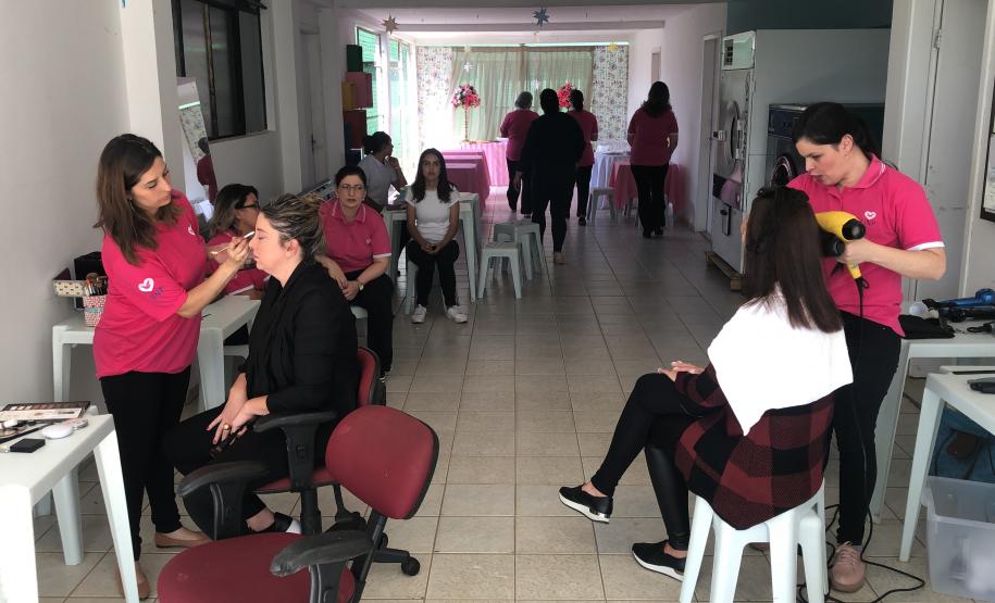 Para a realização da atividade, uma parte da Creche Cantinho Feliz ficou ainda mais colorida, com o ambiente decorado com tecidos e flores e um salão de beleza improvidado, mas, ainda assim, completinho. Mais de 10 voluntárias, entre manicures e cabeleireiras, uniram-se com o objetivo de deixar as servidoras da unidade ainda mais bonitas e, desta forma, tentar elevar a auto-estima de cada uma delas.