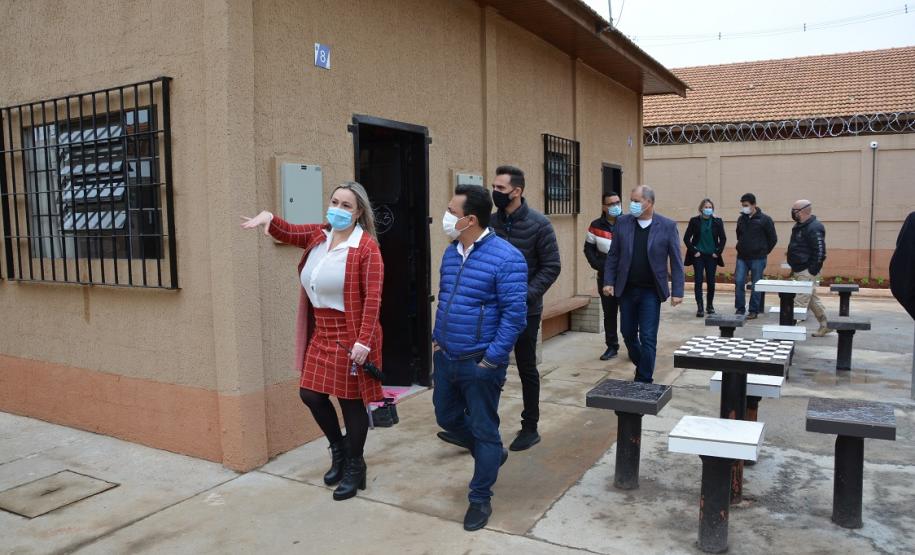 PRESENÇAS – Também estiveram presentes na visita o presidente da Câmara de Vereadores de Goioerê, professor Paraíba, e os vereadores Helton Maia e Patrik Peloi, além do coordenador regional do Depen, Jeferson Walkiu, a diretora do CIS, Paula Cozlik, a vice-diretora do CIS, Fabiana Polli, a coordenadora de políticas para mulheres encarceradas do Depen, Juliana Heindyk Duarte, e o assessor de segurança do Depen, Alisson Andrade.