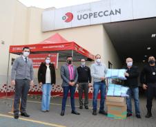 A coordenação regional de Cascavel do Departamento Penitenciário do Paraná (Depen) passou mais sete mil máscaras para o Hospital do Câncer Uopeccan do município. A parceria funciona desde maio e esta última entrega ocorreu na manhã desta quarta-feira (01/07). À casa de saúde, que é referência na região ao tratamento de casos de Covid-19, já foram fornecidas pelo Depen mais de 48,1 mil máscaras, 500 aventais SMS e 200 aventais de tecido.