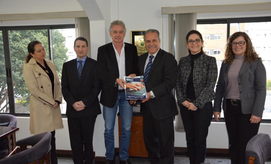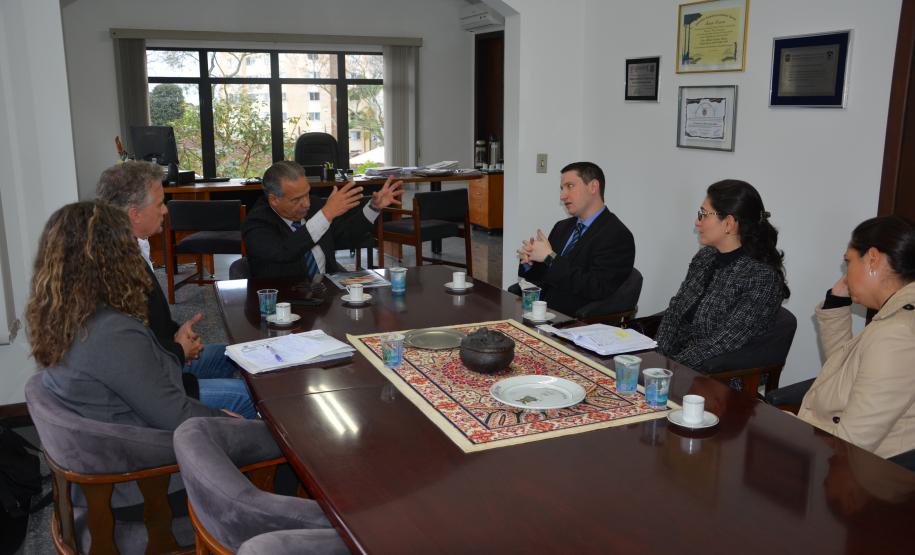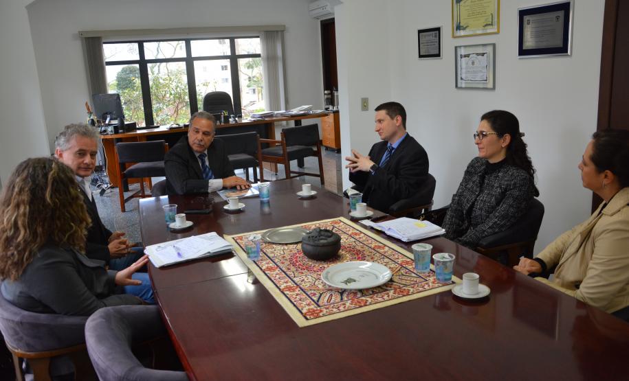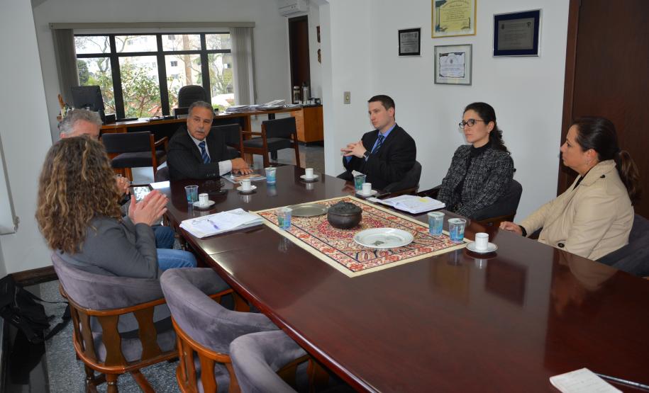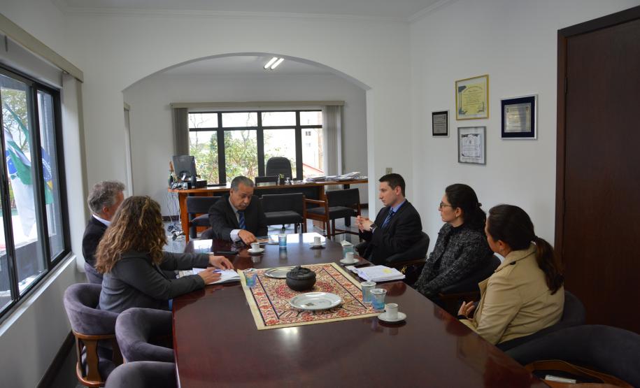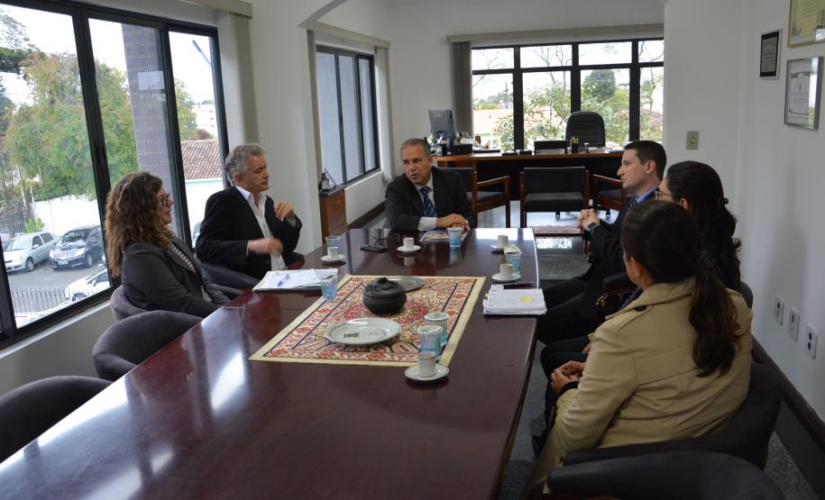PARCERIA – Uma reunião para firmar a parceria foi realizada na sede do Depen, em Curitiba, na última quinta-feira (6). Estiveram presentes na ocasião o diretor do Depen, Luiz Alberto Cartaxo Moura, a coordenadora de Educação do Depen, Glacélia Quadros, representantes da Associação dos Juízes Federais do Brasil (Ajufe) e o representante do Instituto Mundo Melhor (IMM), Orion Barbosa.