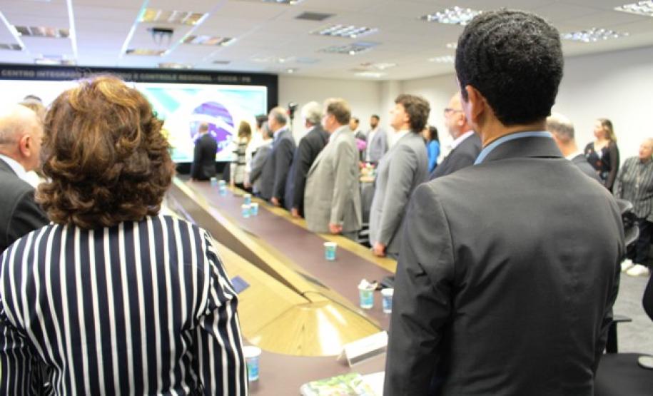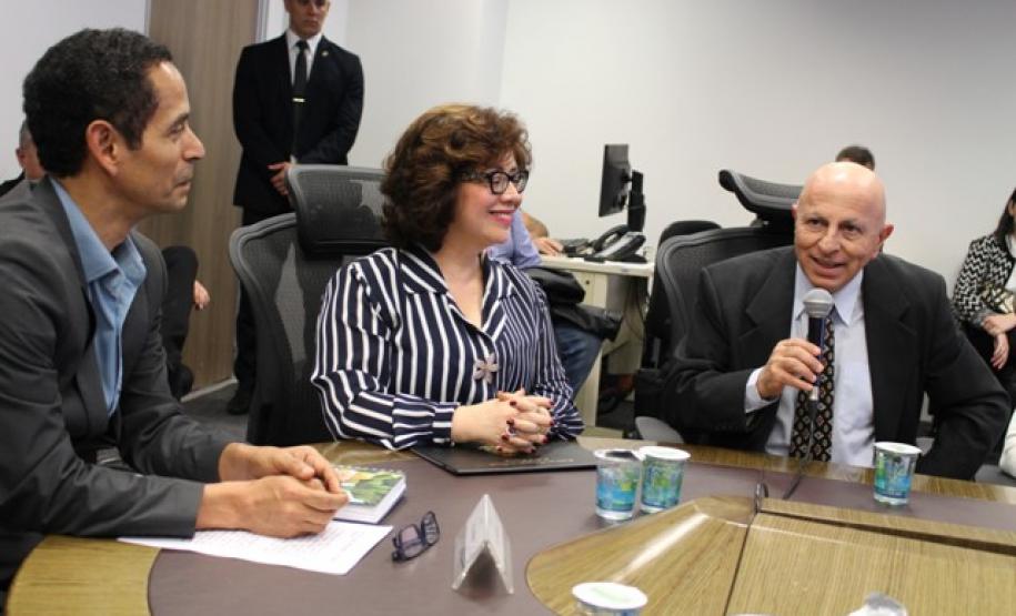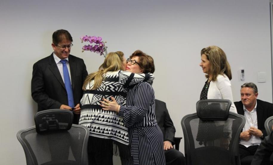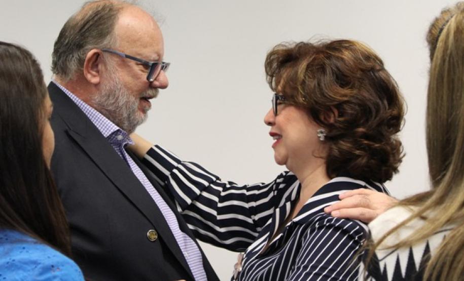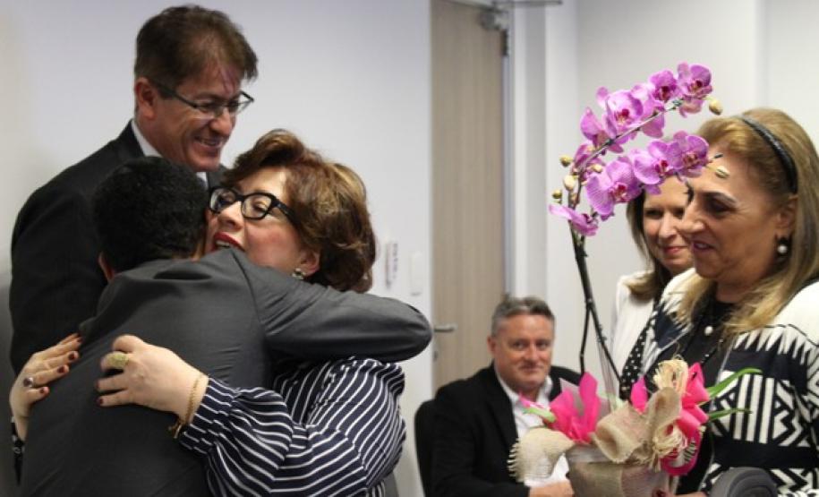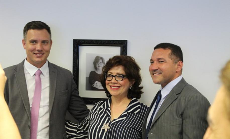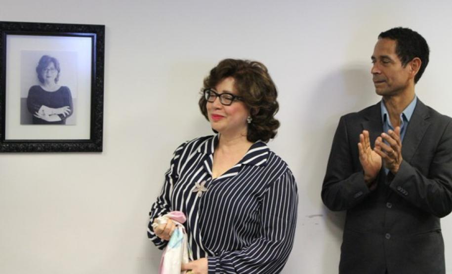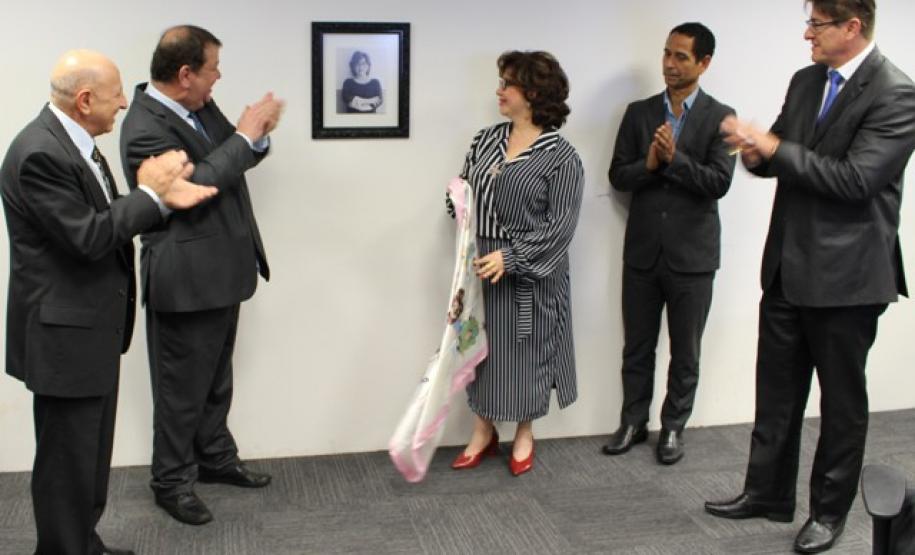 O Departamento Penitenciário do Paraná (Depen) homenageou a primeira e única mulher a coordenar a instituição, a advogada Mara Catarina Mesquita Lopes Leite, na tarde desta quarta-feira (16/10), na Sala de Gestão de Crises da Secretaria da Segurança Pública. Na solenidade, que teve a participação do secretário da pasta, coronel Romulo Marinho Soares, e do diretor do Depen, Francisco Caricati, houve o descerramento da foto que será exposta na galeria de ex-diretores da instituição.
