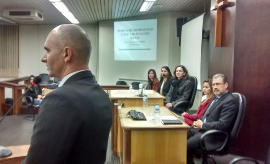 LANÇAMENTO - O lançamento do grupo de diálogos para a comunidade em geral ocorreu também na sexta-feira, em um evento no auditório do Tribunal do Júri, no Fórum de Maringá. Uma palestra foi ministrada pelo professor, Alvino Augusto de Sá, da Universidade de São Paulo (USP), um dos idealizadores do projeto. Ele, inclusive, participou juntamente com sua equipe da roda de conversa na Penitenciária.