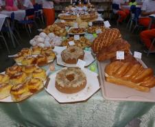 Entre os itens produzidos para o café colonial estavam pães de diversos formatos e tamanhos, bolos, doces, salgados para festa, sobremesas e itens de confeitaria.