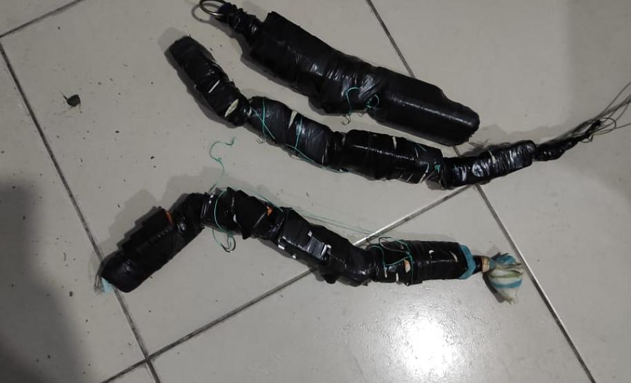 Segundo eles, o indivíduo conseguiu fugir durante a abordagem, mas deixou cair o material que seria arremessado.