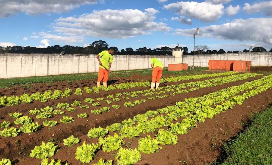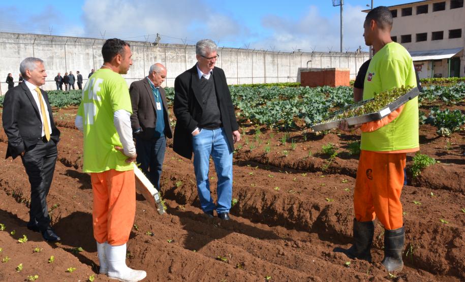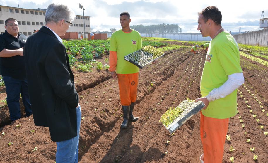 Presos da Penitenciária Central do Estado - Unidade de Progressão (PCE-UP), localizada em Piraquara, na Região Metropolitana de Curitiba, trabalham no plantio de hortaliças e verduras orgânicas produzidas no terreno da unidade penal. Nesta quinta-feira (18), o secretário de Estado da Agricultura e Abastecimento, Norberto Anacleto Ortigara, conheceu a iniciativa, que pode ser ampliada para outras regiões do Estado.