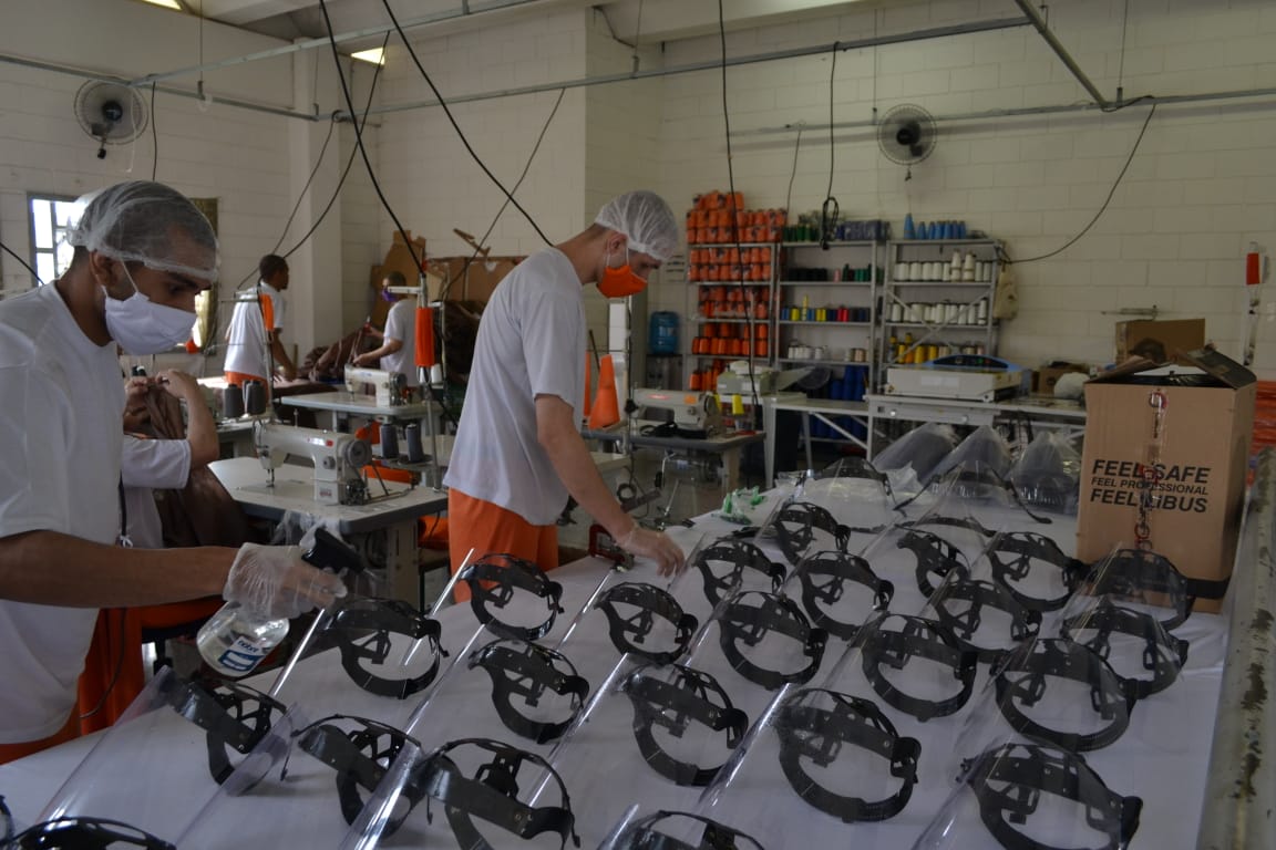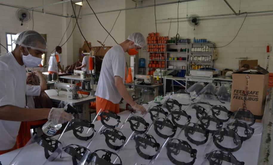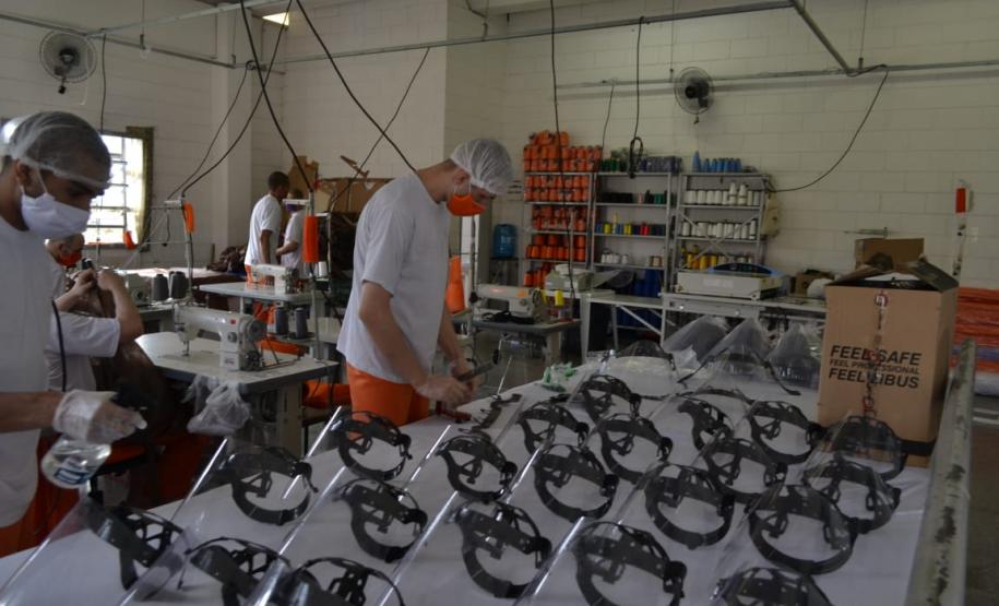 Em duas semanas, a Penitenciária Estadual de Ponta Grossa - Unidade de Segurança (PEPG-US) produziu 450 “face shields” (também conhecidos por escudos faciais ou máscaras de acetato) em uma parceria com a Universidade Estadual de Ponta Grossa (UEPG). A produção, que começou no último 29 de outubro, visa atender as demandas do Hospital Regional de Ponta Grossa, Santa Casa de Misericórdia, Unidades Municipais de Saúde, SAMU, SIATE, Instituto de Identificação do Paraná, CMEIS, APAE, além das demandas internas dos cursos da área da saúde da UEPG, neste período de pandemia.