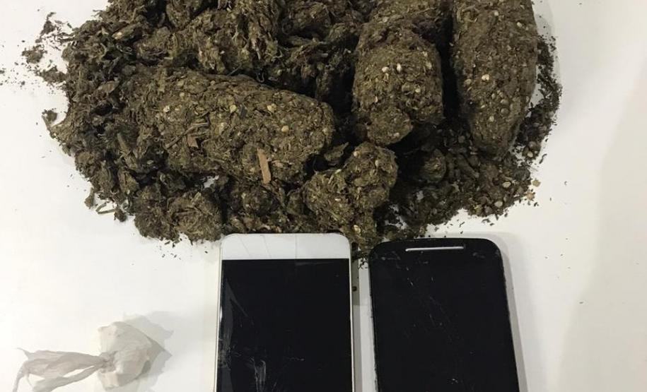 Agentes penitenciários da Cadeia Pública de Guarapuava prenderam uma mulher, de 18 anos, que estava tentando entregar 424 gramas de maconha, 10,4 gramas de cocaína e dois celulares a presos da unidade. A ação ocorreu ainda nas primeiras horas deste sábado (08/08), após os servidores desconfiarem da atitude dos detentos de uma das galerias.