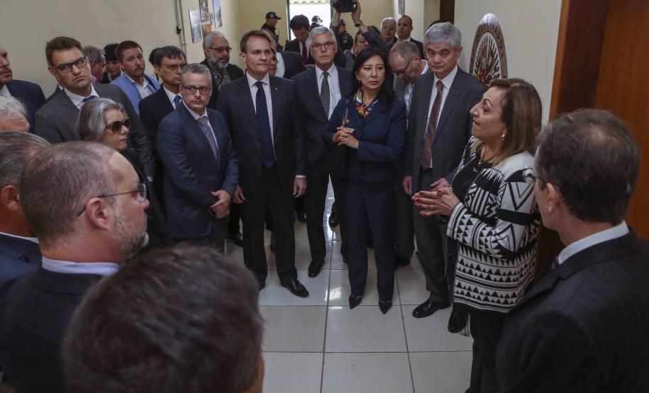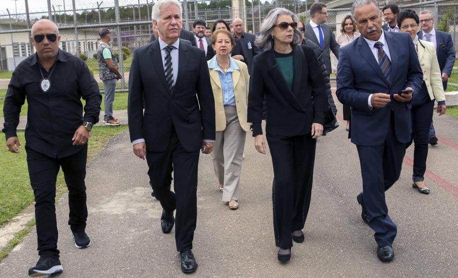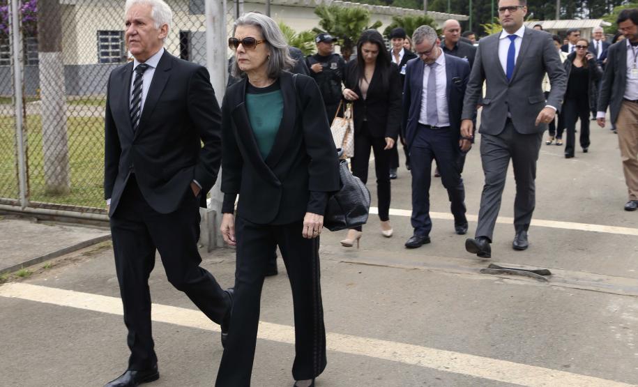 A ministra esteve primeiro na Casa de Custódia de Piraquara (CCP), unidade de entrada do sistema prisional que abriga 1,4 mil presos. O local recebe presos oriundos de delegacias que são identificados e encaminhados para outras unidades prisionais.