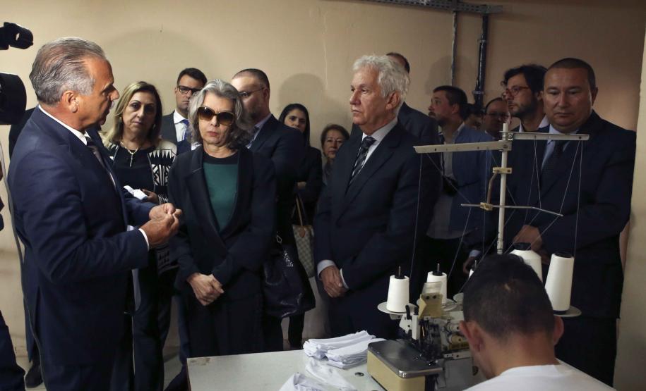 "Essa é uma visita importantíssima para o Paraná. A ministra teve a oportunidade de conhecer nossa unidade de entrada que é a Casa de Custódia e também a Unidade de Progressão, que é uma unidade em que 100% dos presos trabalham, estudam, com um baixíssimo índice de reincidência criminal, ou seja, é uma porta de saída adequada do sistema. Isso demonstra que o Departamento Penitenciário do Estado tem a gestão total dos presos e faz isso de maneira adequada", afirma o secretário da Segurança Pública e Administração Penitenciária, Wagner Mesquita.