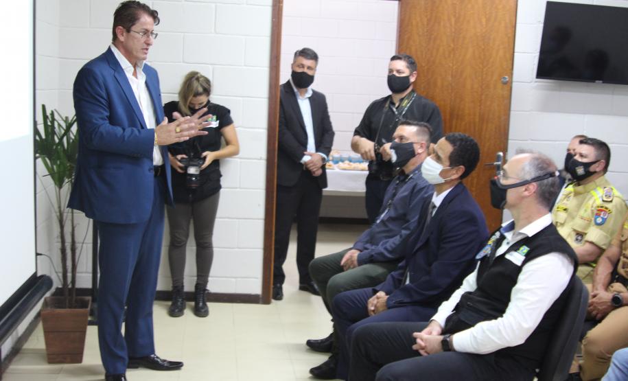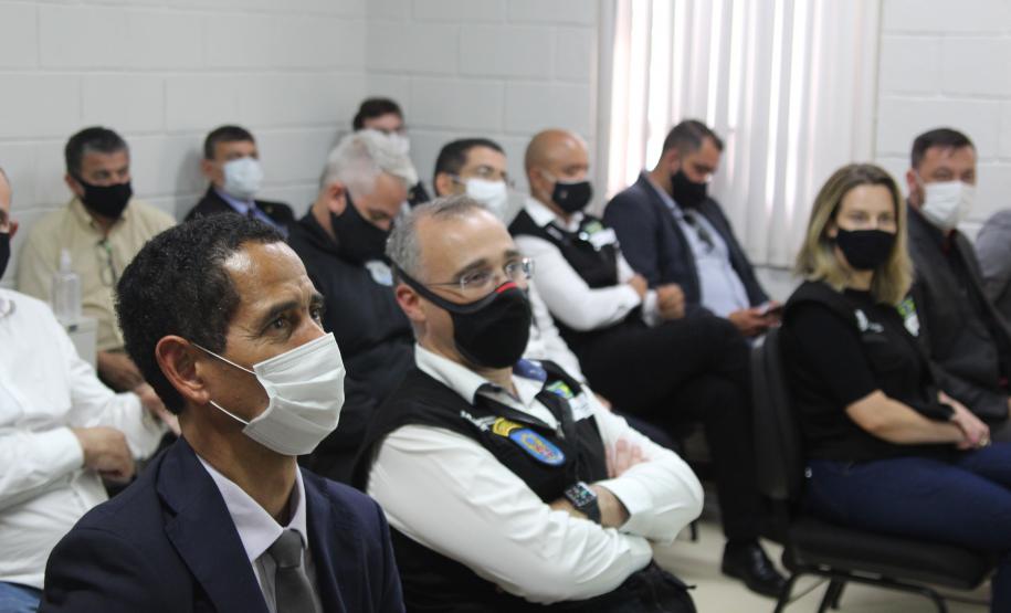 PRESENÇAS - Estiveram no evento o deputado federal Sargento Fahur, o delegado-geral da Polícia Civil, Silvio Rockembach; o comandante do Corpo de Bombeiros, coronel Gerson Gross; o diretor-geral da Polícia Científica, Luiz Rodrigo Grochocki; o comandante-geral da PM, coronel Hudson Leôncio Teixeira, o diretor do Departamento de Inteligência do Paraná, Sivanei de Almeida Gomes, o vice-diretor do Depen, Luiz Francisco da Silveira, o coordenador regional do Depen, em Curitiba, Jeferson Walkiu, o assessor de segurança do Depen, Alisson Andrade, o coordenador regional do Depen, em Ponta Grossa, Maurício Ferracini, o diretor da Casa de Custódia de São José dos Pinhais, Samuel Moreira e o chefe do Setor de Produção e Desenvolvimento (Seprod) do Depen do Paraná, Boanerges Silvestre Boeno Filho.