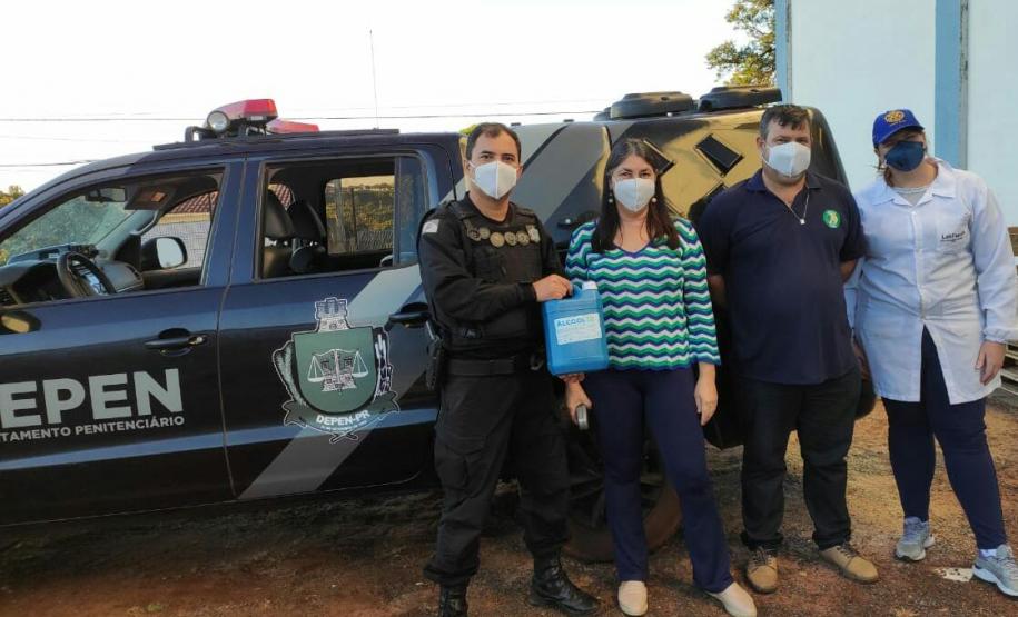O Departamento Penitenciário de Maringá recebeu 250 litros de álcool em gel a 70ºINPM glicerinado, produzido no Campus Avançado da Universidade Federal do Paraná (UFPR) em Jandaia do Sul. O item é um dos produtos de higiene e limpeza apontados como eficientes no combate ao coronavírus (Covid-19). No mesmo encontro, que ocorreu nas dependências da universidade, na segunda-feira (20/04), o Depen doou 300 máscaras descartáveis produzidas no sistema penitenciário.