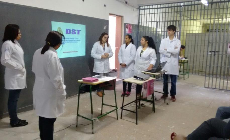 Alunos do curso, com a orientação dos professores e dos profissionais do CMP, fizeram coletas de material para exames como o ginecológico preventivo (papanicolau), que detecta doenças como o câncer do colo do útero, além da aplicação de testes rápidos para detecção de HIV, Sífilis e Hepatites. Foram realizadas também, palestras de orientação quanto ao uso de métodos contraceptivos e avaliação antropométrica, com aferição de peso e altura das presas.