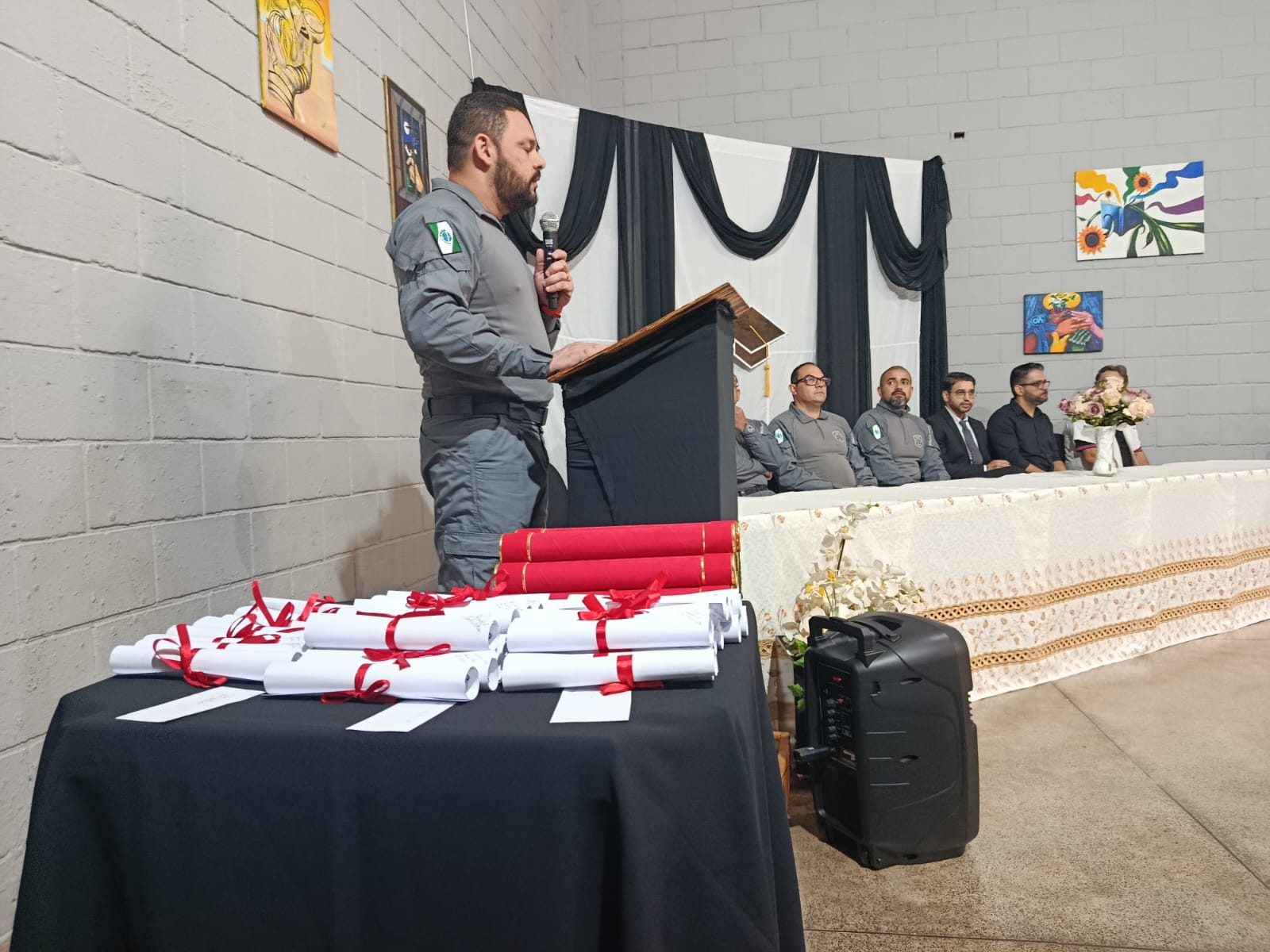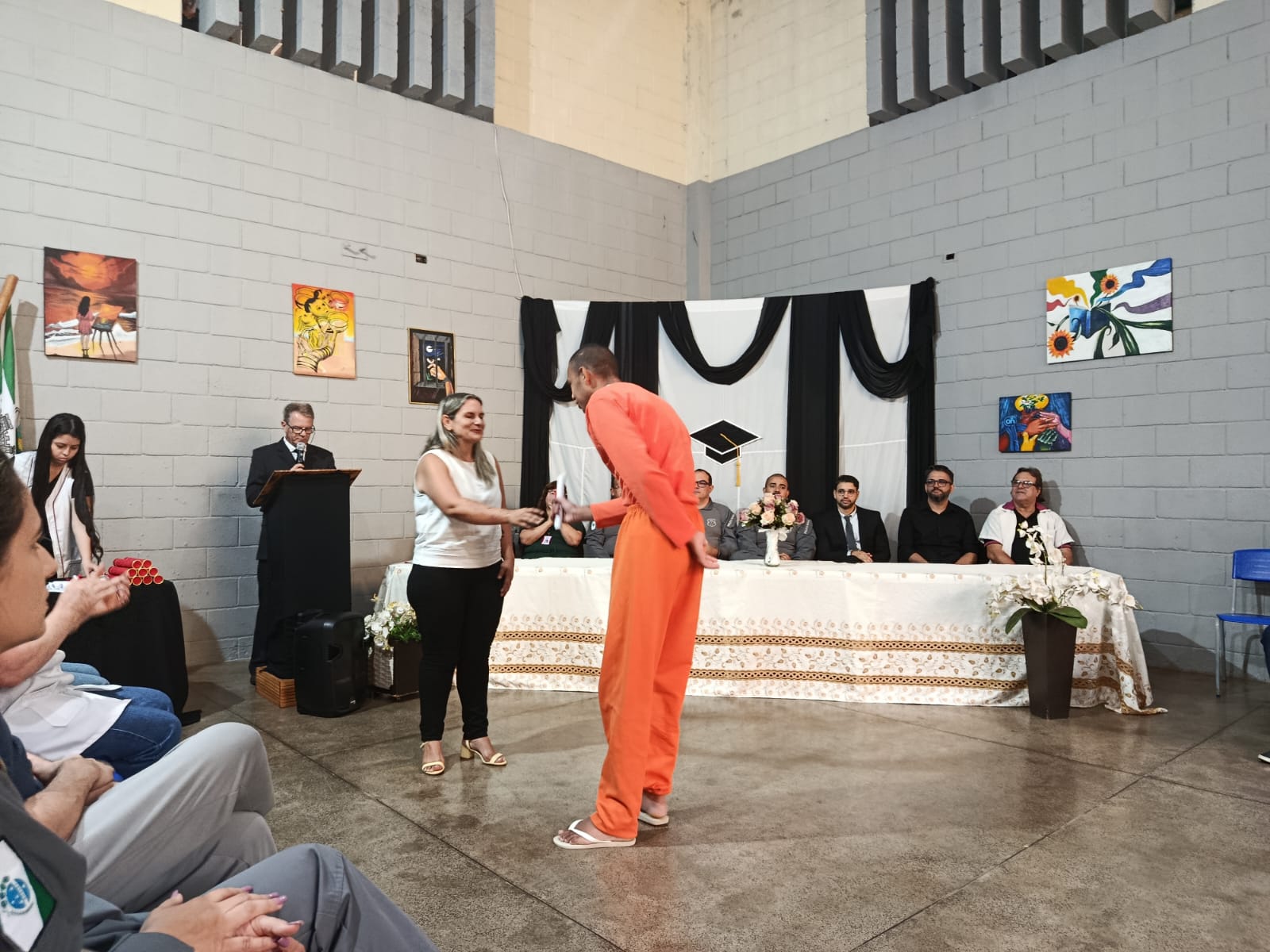 A cerimônia reuniu representantes do Conselho da Comunidade local, Defensoria Pública, Ceebja Helena Kolody, Núcleo Regional de Educação, representantes religiosos e servidores da regional administrativa da PPPR em Foz do Iguaçu. A integração entre as instituições foi essencial para o desenvolvimento das atividades educacionais dentro da unidade. A entrega dos certificados marcou a consolidação do esforço dos internos e da equipe envolvida na implementação das políticas de ensino.
