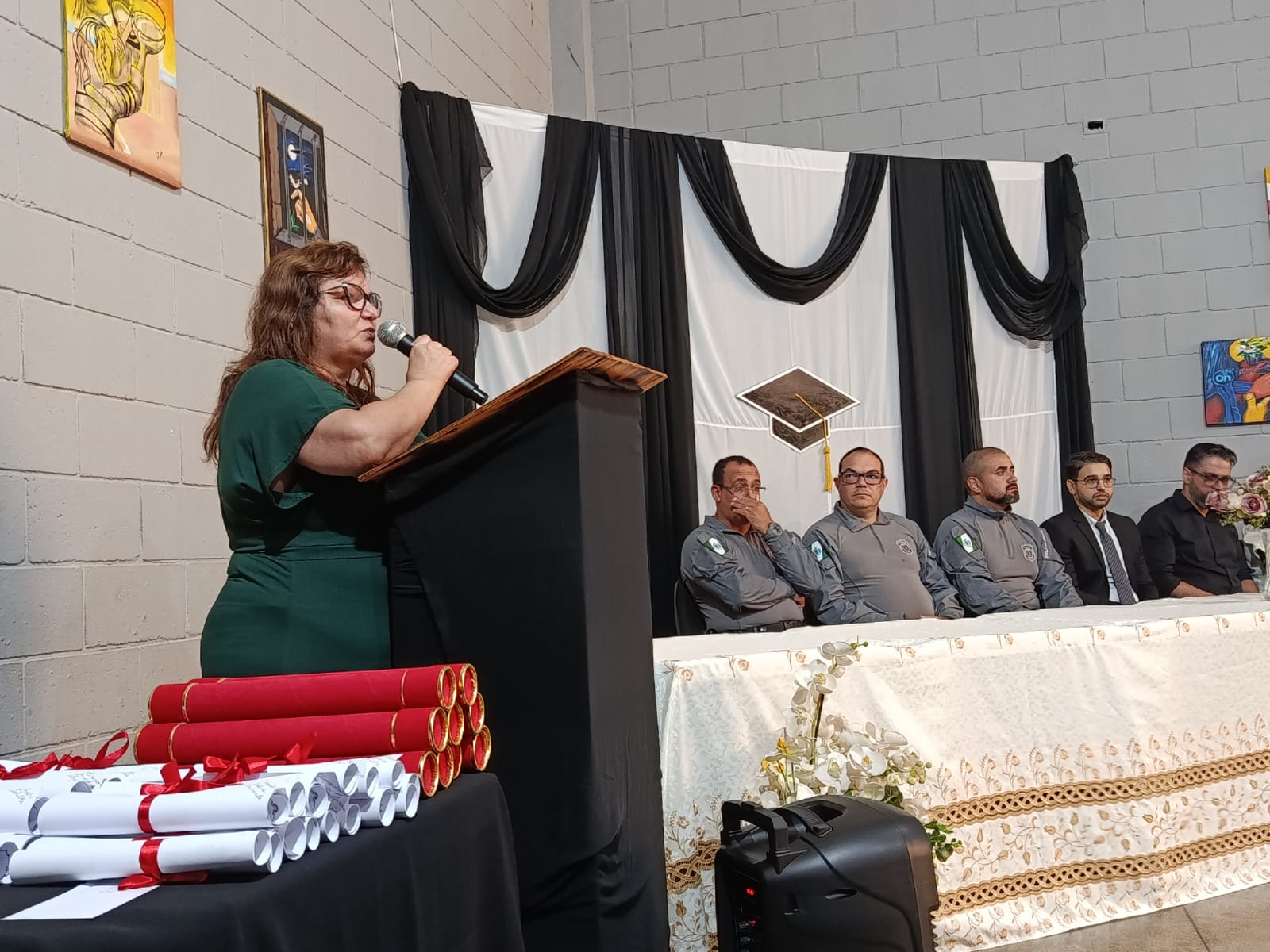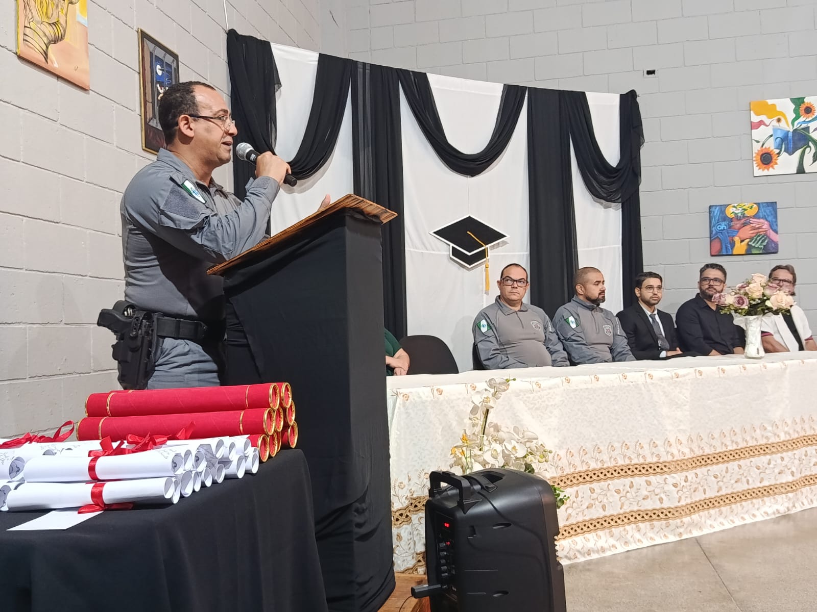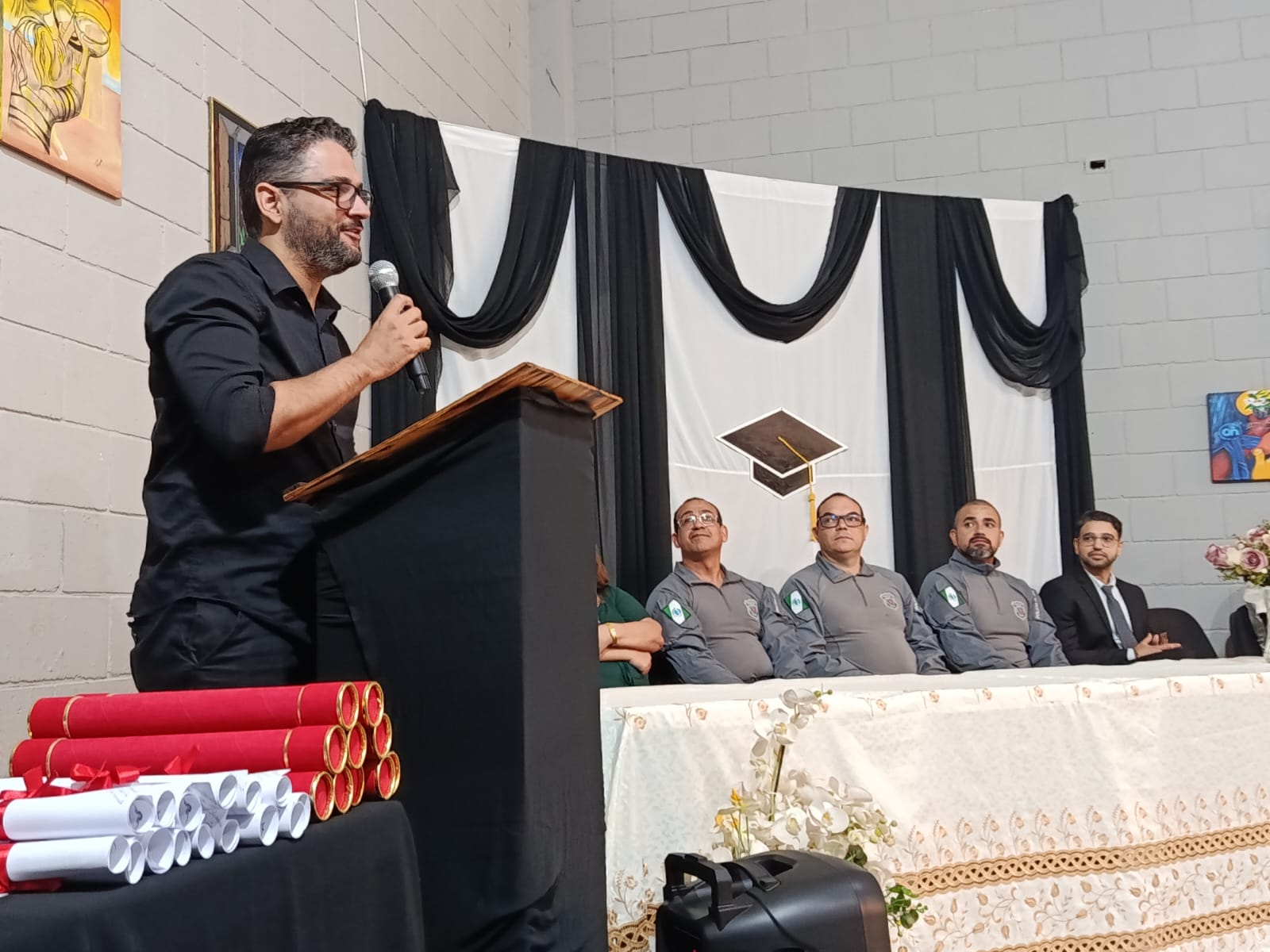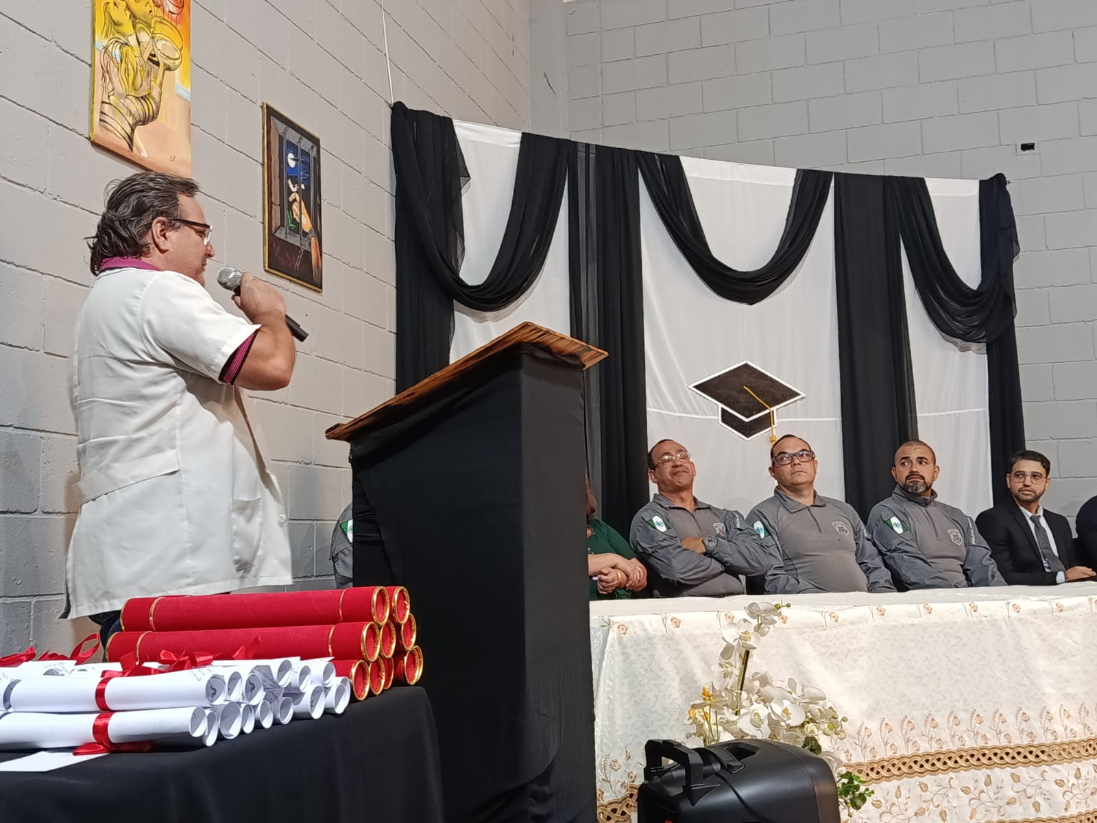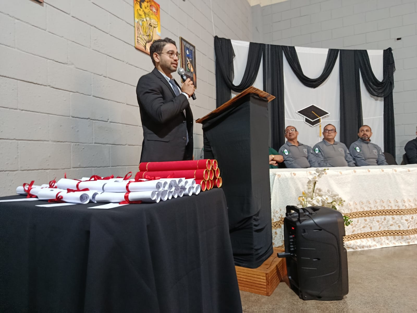 O defensor público do Estado do Paraná, Edmar Alves de Castilho, ressaltou o papel da Defensoria Pública na proteção das PPL: “Nosso dever é zelar pelos direitos dessas pessoas e apoiar sua reintegração ao meio social. A formatura marca um recomeço e reafirma a educação como instrumento de transformação. Estamos aqui para prestigiar este momento e fortalecer iniciativas que promovam desenvolvimento e novas oportunidades”, disse.