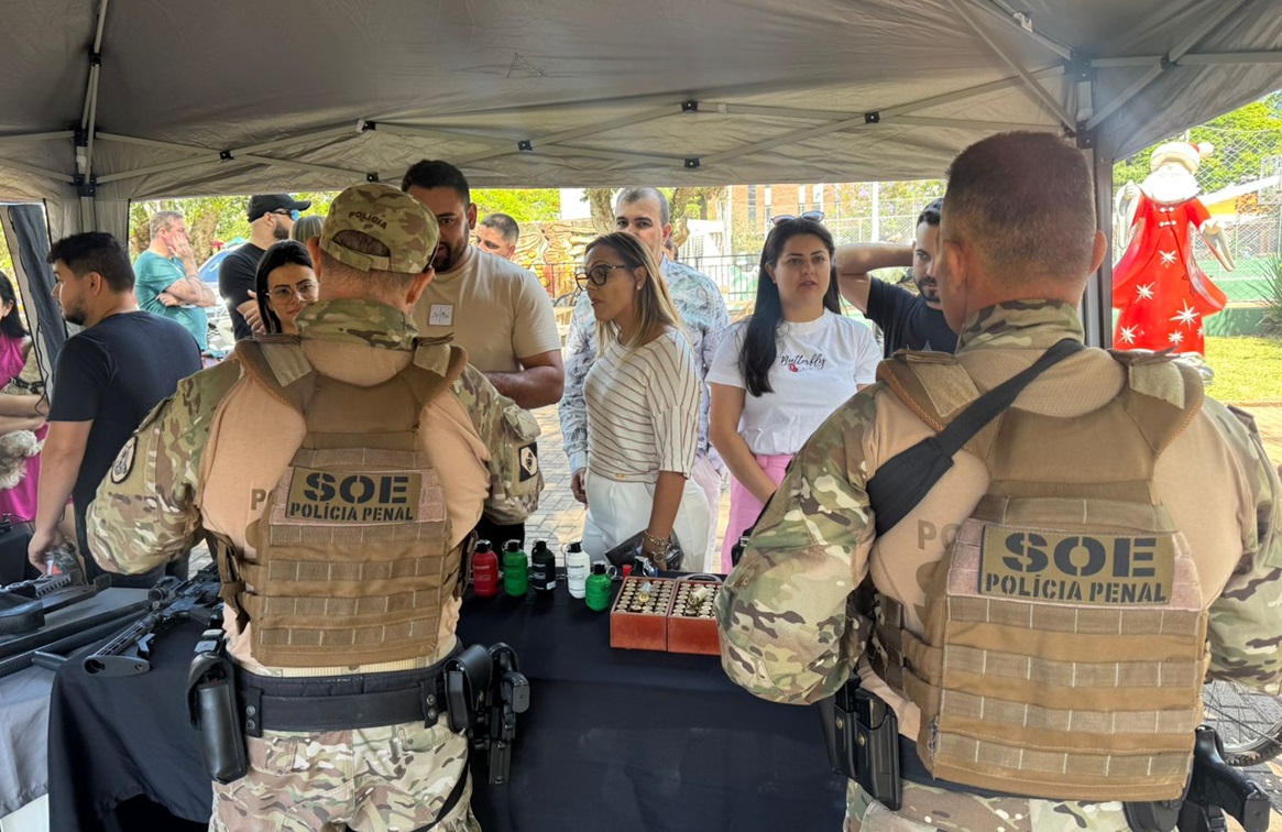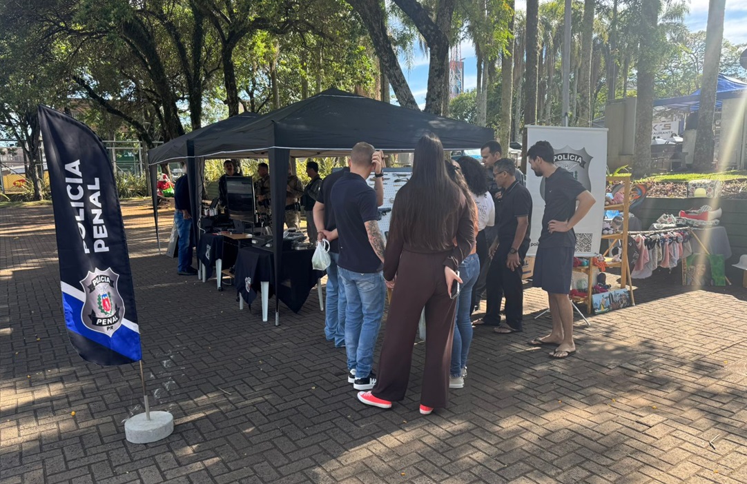 A Polícia Penal do Paraná (PPPR), por meio de sua regional administrativa em Cascavel, realizou no último domingo (9) uma exposição especial na Feira do Pequeno Produtor, no centro da cidade, em alusão ao Dia do Policial Penal, celebrado em 13 de novembro. A ação levou à Praça Wilson Joffre um pouco do dia a dia do trabalho penitenciário, aproximando a comunidade da atuação desses profissionais que contribuem diretamente para a Segurança Pública e para a reintegração social de pessoas privadas de liberdade (PPL).