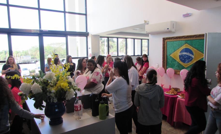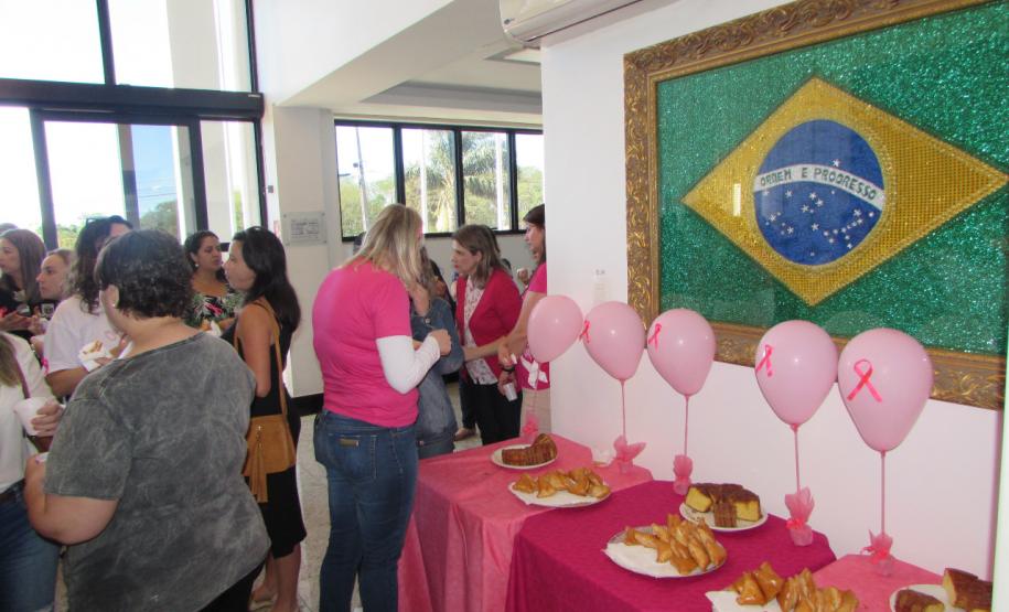 A regional de Foz do Iguaçu, organizou um café da manhã com palestra e sorteio de brindes para as servidoras. Durante o evento, que aconteceu nesta na terça-feira (22/10), a médica e coordenadora do Programa Saúde da Mulher, Cristiane Magdalena Lopes Pereira, falou sobre a importância da prevenção, do diagnóstico e do tratamento do câncer de mama.