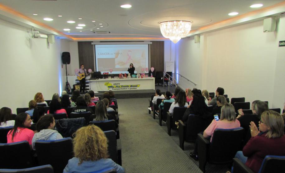 Em seguida, a diretora da Legião Feminina de Combate ao Câncer (LFCC), do Hospital Uopeccan, Iria Maria Garmatz, falou sobre sobre cuidados e prevenção ao câncer de mama. Na ocasião, que contou com a participação de cerca de 60 pessoas, o diretor da PIC, Leonardo Henrique Dondoni fez a entrega, de 70 almofadas em formato de coração e 25 naninhas para a diretora da LFCC, Iria Maria Garmatz.