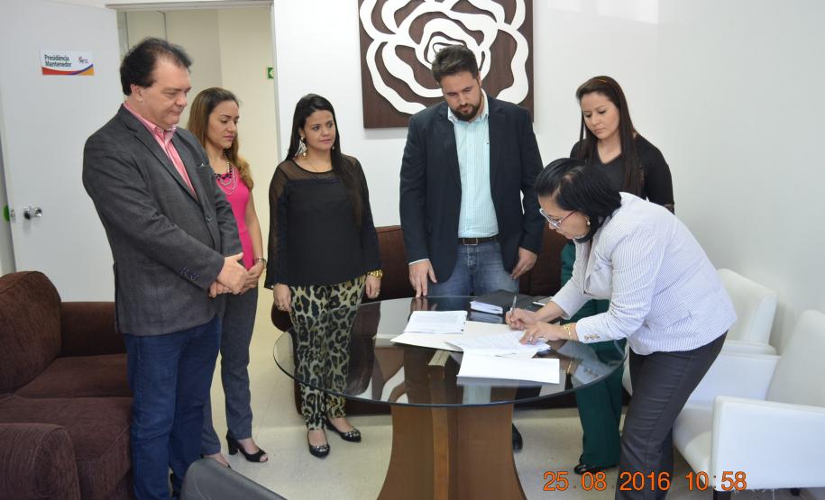 ASSINATURA - O termo de parceria foi assinado na última quinta-feira (25), na sede da faculdade. Estiveram presentes na ocasião o diretor da Penitenciária, Willian Zonatto, diretores da Unifoz, Silvia Helena Araujo e Luiz Francisco Marchioratto, e a coordenadoria de Direito e o Núcleo de Práticas Jurídicas.