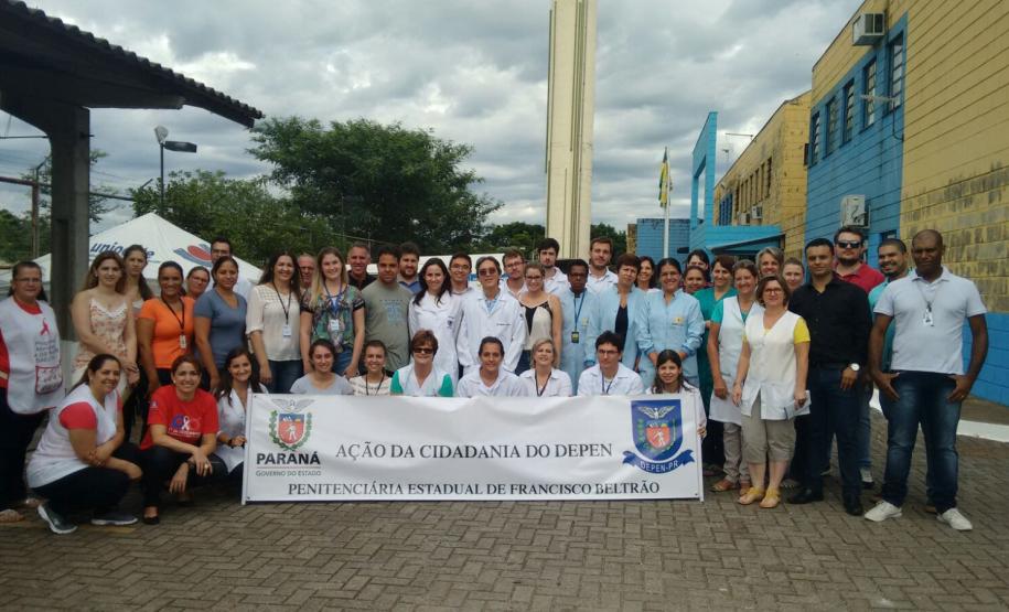 Familiares de detentos da Penitenciária Estadual de Francisco Beltrão participaram no fim de semana do 1º Dia da Ação da Cidadania do Departamento de Execução Penal do Paraná (Depen). A iniciativa, que tem por objetivo o cuidado e atenção às famílias, aconteceu no horário de visitação da unidade. Foram ofertados diversos serviços gratuitos, em parceria com outras instituições.