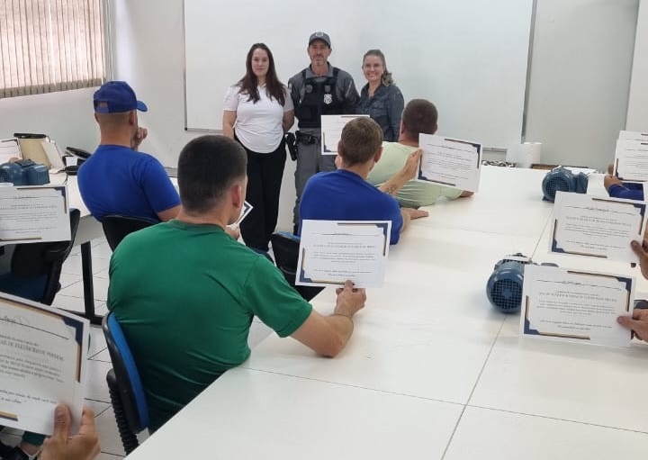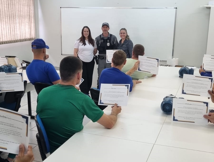 A Polícia Penal do Paraná (PPPR) formou 22 pessoas privadas de liberdade (PPL) em um Curso de Auxiliar de Eletricidade Predial, realizado em parceria com o Serviço Nacional de Aprendizagem Industrial (Senai), o Serviço Social da Indústria (Sesi) e a Prefeitura Municipal de Francisco Beltrão, através da Secretaria de Ciência, Tecnologia e Inovação. A formatura foi celebrada na terça-feira (18), após 160 horas de aulas distribuídas em quatro meses de qualificação profissional.