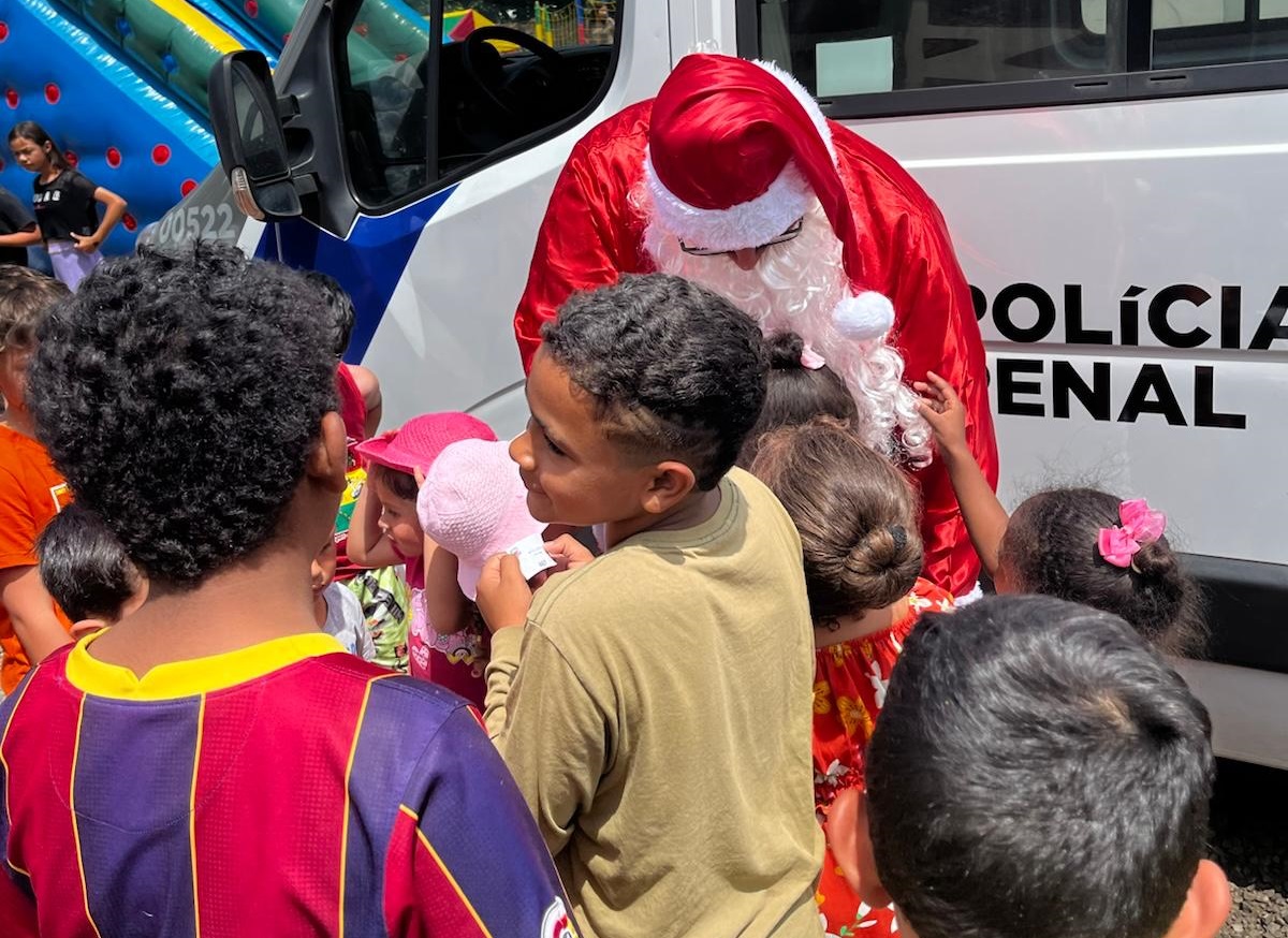 A entrega contou com a presença especial de um Papai Noel inusitado: um policial penal que, naquela tarde, trocou seu uniforme e pelo tradicional traje natalino, encantou as crianças e trouxe ainda mais magia para o momento.