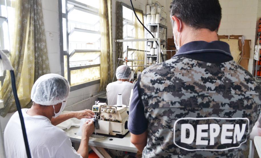 TRABALHO NAS PRISÕES - Em todo o Estado, mais de 200 presos estão implantados nos canteiros de costura do Depen, mas a ideia é aumentar. “Estamos organizando tudo conforme a demanda e ampliando as vagas de setores de costura. Conforme conseguimos mais máquinas de costura estamos equipando cadeias públicas para que os detentos também possam ajudar”, afirmou o chefe do Setor de Produção e Desenvolvimento (Sepro), Boanerges Silvestre Boeno Filho.