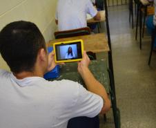 Para a professora de Língua Portuguesa Zoraide Campos, a ideia é facilitar a aprendizagem. “Não tem como fugir da tecnologia, hoje, então a gente tem que usar a favor também da escola. Temos dificuldades para movimentar os alunos até as salas de aula, então levamos parte das aulas até eles. Acho que vai facilitar muito. Estou sentindo que eles estão muito empolgados, é uma novidade para eles”, conta a professora.