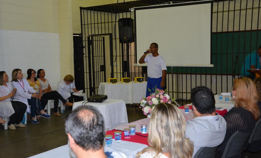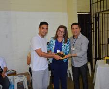 LANÇAMENTO – Estiveram presentes no evento de lançamento a juíza da Vara de Execuções Penais e Corregedoria dos Presídios de Cruzeiro do Oeste, Roseli Maria Geller Barcelos, representantes do Depen, Conselho da Comunidade, Pastoral Carcerária, Secretaria da Educação (Seed), Núcleo Regional de Educação de Umuarama, Universidade Paranaense (Unipar) e servidores da penitenciária.