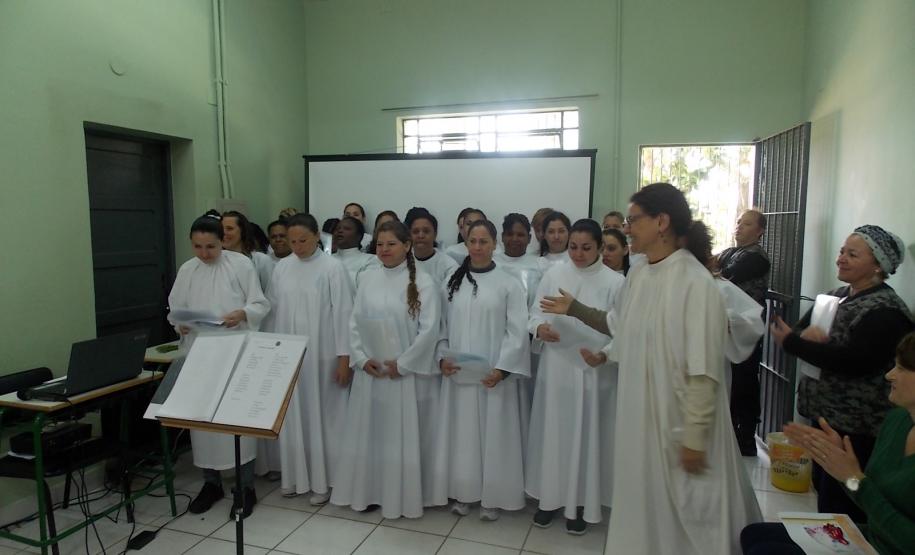 ENTREGA - Na última sexta-feira (4), foi realizada a entrega simbólica do projeto "Tudo de cor para a Penitenciária Feminina do Paraná ", em Piraquara. A cerimônia aconteceu na sala de música da PFP e contou a apresentação de um Coral, formado por mulheres presas na instituição.