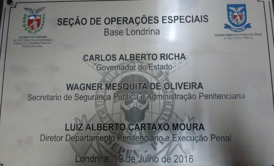A Seção de Operações Especiais (SOE) do sistema prisional paranaense que atua em toda a região de Londrina, no norte do Estado, passou a contar com uma base própria, nesta terça-feira (19). É lá que a partir de agora ficam os 32 profissionais que compõem o grupo, vinculado à Divisão de Operações de Segurança (DOS) do Departamento de Execução Penal (Depen), e que são responsáveis por agir como primeiro interventor em situações de crise que ocorram dentro das unidades penais.