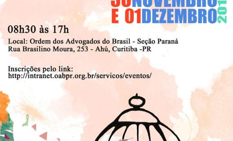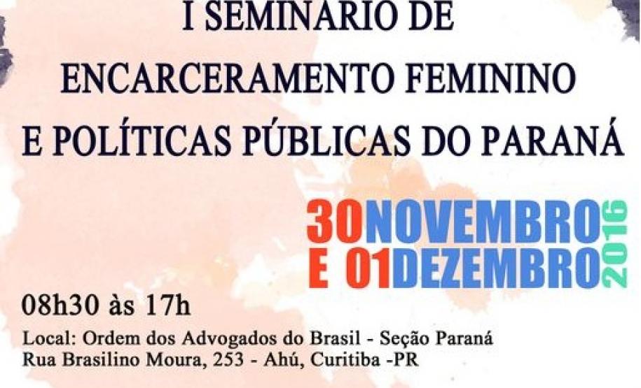 Estão abertas as inscrições para o 1º Seminário de Encarceramento Feminino e Políticas Públicas do Paraná. O evento acontecerá entre os dias 30 de novembro e 1º de dezembro, na sede da Ordem dos Advogados do Brasil (OAB-PR), em Curitiba.